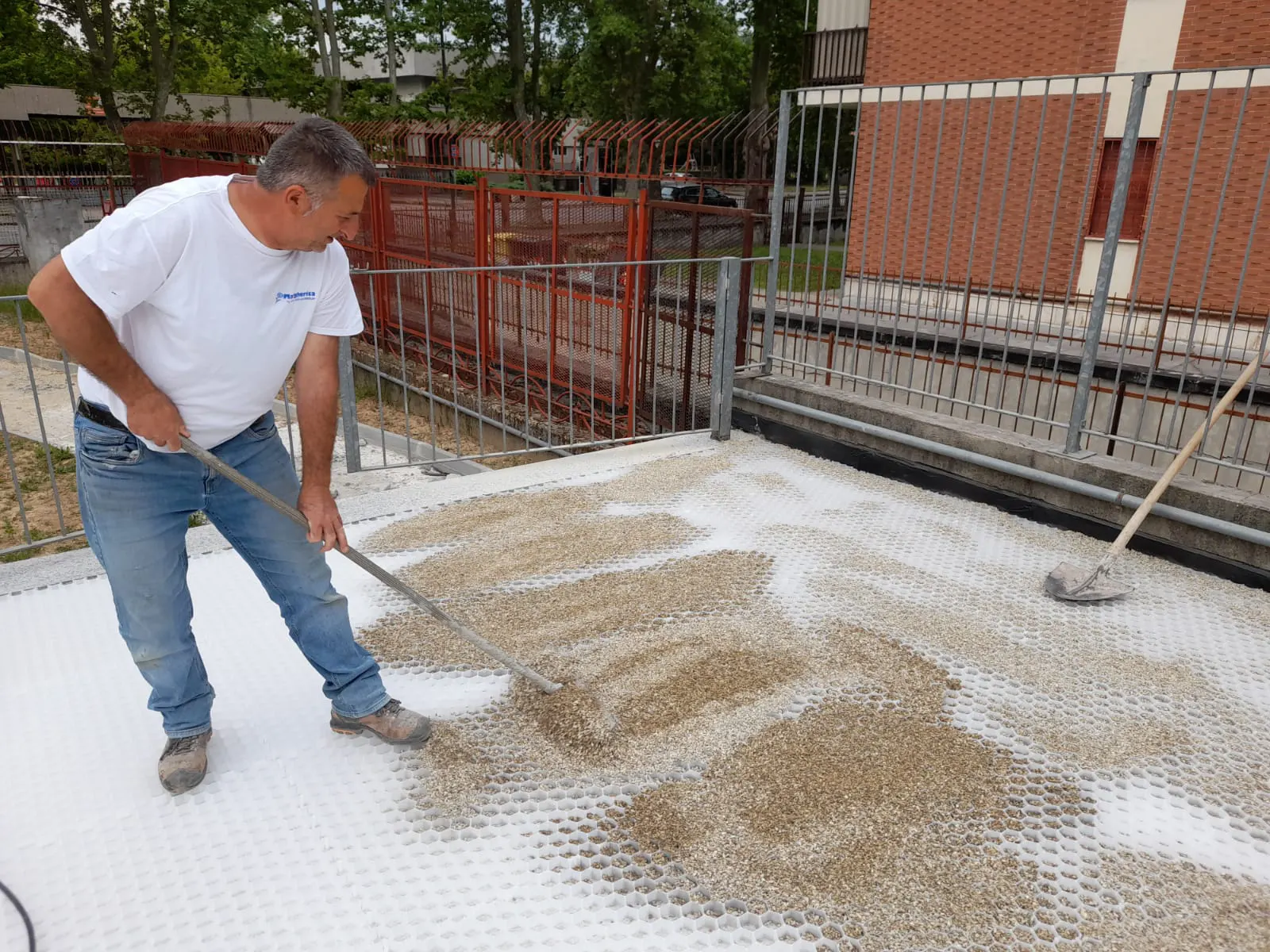 Thanks to its highly containing honeycomb structure for gravel and pebbles and to the layer of high-strength geotextile fabric, rainwater can be absorbed more evenly by the ground, ensuring uniform drainage management and a stable and safe surface for pedestrians and vehicles.