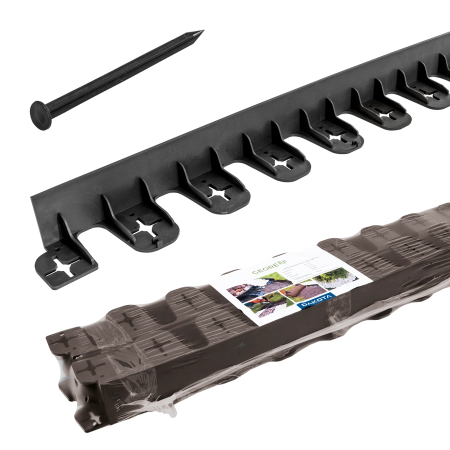 The installation is quick and easy and it does not require any particular or special tools. The profiles can be connected to each other by overlapping the ends and, once positioned according to the layout, can be fixed to the ground using the provided plastic spikes.